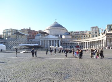 Plebiscito Meydanı: Bu meydan Napoli’deki ilk duraklardan, adeta bütün yolların çıktığı en merkezi noktası. Bir tarafta Royal Palace (Kraliyet Sarayı), diğer tarafta Pantheon’dan esinlenerek yapılmış San Francesco di Paolo Kilisesi ile Napoli’nin diğer İtalya şehirlerine en çok benzeyen noktası diyebilirim. Bu meydan da olmasa İtalya algımın tamamen dışında kalacakmış sanki Napoli. Özellikle gece olduğunda Kraliyet Sarayı’ndaki Napoli krallarının heykelleri oldukça ihtişamlı gözüküyor, adeta canlanıp tarihin içinden geçerek size doğru geleceklermiş gibi. O yüzden hem gecesi hem gündüzünü görmenizi tavsiye ederim. Yılbaşı akşamı kilise tarafındaki ışıklandırmalar da ayrıca güzel bir hava katmıştı. Bir de restorasyonumsu çalışmalara denk gelmeseydik çok mutlu olurdum.